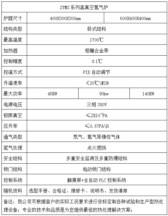 產(chǎn)品簡介:該設(shè)備ZYMS1700-90-64將真空/氣氛、高溫?zé)Y(jié)結(jié)合在一起,是我公司專門陶瓷金屬化霧化芯行業(yè)、晶圓加熱板行業(yè)研發(fā)的一款高真空氫氣燒結(jié)爐(可真空燒結(jié)也可通氫氣燒結(jié));該設(shè)備具有超高的溫場均勻度,多重的安全保護結(jié)構(gòu)、精準(zhǔn)的控制精度,合理結(jié)構(gòu)及控制系統(tǒng)設(shè)計可以讓生產(chǎn)更加安全高效,節(jié)省人力及工藝成本、提高生產(chǎn)效率;