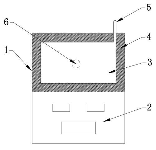 3、根據(jù)權(quán)利要求1所述的稀土三其色熒光粉燒結(jié)實(shí)驗(yàn)爐,其特征在于所述保溫爐殼(4)的背部設(shè)有與爐膛(3)連通的進(jìn)氣口(6),所述的進(jìn)氣口(6)位于爐膛(3)的后壁上。