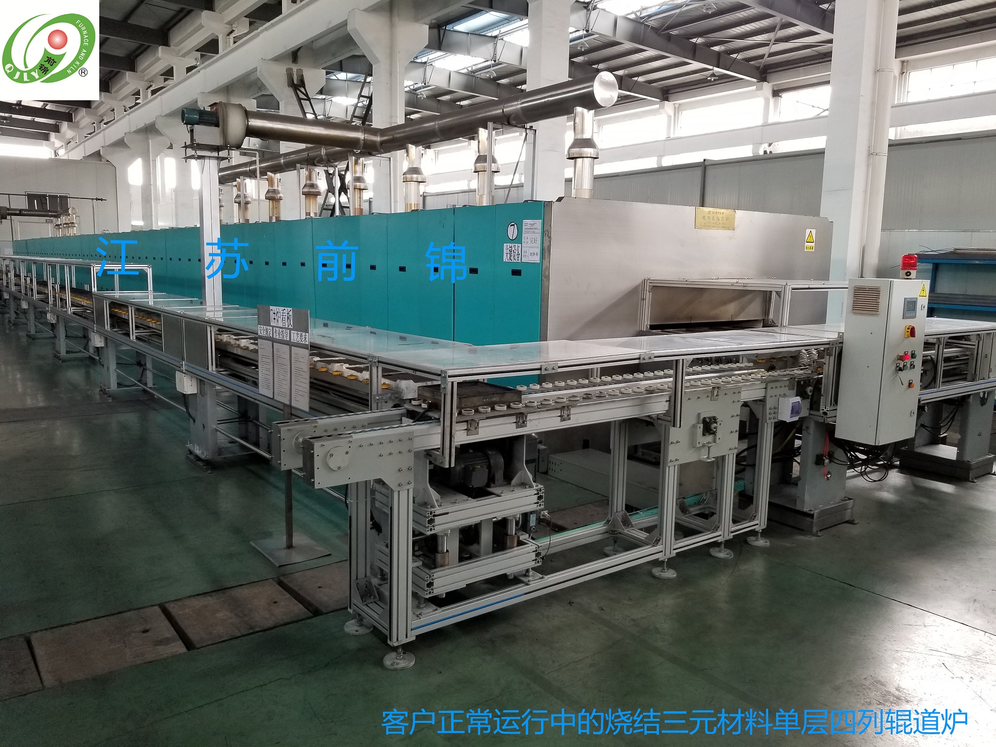 適用工藝:鈷酸鋰、錳酸鋰、三元材料、氧化鈷等材料的連續(xù)燒成 設(shè)計(jì)單位:江蘇前錦爐業(yè)設(shè)備有限公司 作者:劉俊 前言:電池材料的好壞,沒有界限,一是來自材料工藝本身的處理,另外就是設(shè)備選型和設(shè)計(jì)細(xì)節(jié)的關(guān)鍵所在,本文是作者在鈷酸鋰、錳酸鋰、氧化鈷、三元材料等材料十年以來在一次、二次燒結(jié)過程中吸取大量實(shí)踐經(jīng)驗(yàn)并完全復(fù)制日本同類型窯爐而最終投向市場的一種高端輥道窯。文章內(nèi)容為設(shè)計(jì)細(xì)節(jié),望作參考,為鋰電貢獻(xiàn)僅有力量。 關(guān)鍵詞:鈷酸鋰 錳酸鋰 富鋰基錳酸鋰 高壓鈷酸鋰 高鎳三元材料 四氧化三鈷 氧化鈷 鈦酸鋰 匣缽 坩堝 承燒板 推板 石墨匣缽 石墨坩堝 鋰電池負(fù)極材料鈦酸鋰 一:總則 1.1本設(shè)計(jì)書僅限于江蘇前錦爐業(yè)設(shè)備有限公司RGD-29.16-1520單層四列大氣窯爐設(shè)備的設(shè)計(jì)、制造、安裝、調(diào)試及售后服務(wù)。 1.2本設(shè)計(jì)書提出的技術(shù)要求為甲乙雙方前期技術(shù)交底協(xié)商后的技術(shù)標(biāo)準(zhǔn)要求,明細(xì)請(qǐng)參照:(附件一)在簽訂合同后,甲方保留對(duì)本協(xié)議書提出補(bǔ)充要求和修改的權(quán)利,乙方允諾予以配合。如提出修改,具體項(xiàng)目和條件由甲乙雙方商定后執(zhí)行。 1.4 本設(shè)計(jì)書作為訂貨合同的附件,與合同正文同時(shí)生效。 1.5 本設(shè)計(jì)書只在本次訂貨事宜中有效。 二:供貨范圍及商家信息 2.1 供貨產(chǎn)品名稱 RHK-29.16-1520單層四列大氣窯爐 2.2 規(guī)格型號(hào) 定制設(shè)備 2.3 數(shù)量 1套 2.4 生產(chǎn)廠家 宜興市前錦爐業(yè)設(shè)備有限公司 三:技術(shù)標(biāo)準(zhǔn) 3.1 生產(chǎn)線所有零部件、控制元件的設(shè)計(jì)、加工、安裝、調(diào)試均以現(xiàn)有國家標(biāo)準(zhǔn)為最低標(biāo)準(zhǔn)執(zhí)行,系統(tǒng)設(shè)計(jì)參照全年連續(xù)運(yùn)行300天安全性能為基礎(chǔ)標(biāo)準(zhǔn)。(耗材及易損件除外) 3.2 電器標(biāo)準(zhǔn):西門康可控硅模塊移相觸發(fā)(SCR)控溫,日本智能儀表,日本進(jìn)口觸發(fā)器,西門子低壓電器(斷路器、交流接觸器、電流電壓表、電流互感器、、中間繼電器、電器附件等)安徽天長儀表廠K、S分度熱電偶。 四:設(shè)備運(yùn)行環(huán)境條件 4.1 海拔高度:小于1500M 4.2 環(huán)境濕度:-20-30保持正常工作 4.3 環(huán)境空氣粉塵含量:40g/m3 4.4 環(huán)境溫度:-10℃—45℃保持正常工作 五:技術(shù)要求 5.1 主要技術(shù)參數(shù) 5.1.1電源參數(shù) 交流電380VAC 正負(fù)10VAC 5.1.2功率參數(shù) 參照 附件一 5.1.3 配電總電源接地電阻≤5歐姆 5.2 主要技術(shù)性能 明細(xì)參照 附件一 5.2.1 最高溫度: 1100℃ 5.2.2 爐膛尺寸: 29160L×1520W×150H(mm) 5.2.3 有效尺寸: 29160L×1320W×115H(mm) 5.2.4 設(shè)備外形: 32160L×2320W×2700H(mm) 5.2.5 額定功率: 420KW 5.2.6 保溫功率: 280KW(和進(jìn)、排氣量及輸送速度有關(guān)) 5.2.7 爐側(cè)壁溫度:50oC+室溫。離輥棒孔及加熱棒孔的距離≥150mm。 5.2.8 加熱元件: 1-4區(qū)用電阻絲棒φ45:66+5(備件)=71根(瑞 典進(jìn)口)其余溫區(qū)用φ35硅碳棒(德國進(jìn)口):120+10(備件)=130根 5.2.9 加熱方式: 電阻絲棒和硅碳棒皆為上下水平加熱,每個(gè)溫區(qū)上層加熱元件需要加裝保護(hù)套管(電阻絲保護(hù)管φ45,碳棒保護(hù)管φ60),防止?fàn)t內(nèi)氣氛對(duì)加熱元件的腐蝕。下層加熱元件不需要加保護(hù)套管。 5.2.10 溫區(qū)劃分: 14個(gè)溫區(qū),1溫區(qū)為單點(diǎn)控溫,2~14溫區(qū)為上下控溫;全爐共27個(gè)控溫點(diǎn)。爐尾降溫區(qū)設(shè)4個(gè)測溫點(diǎn)。 5.2.11 爐膛材料: 內(nèi)層加熱區(qū)除5-8溫區(qū)的頂部材料為鋯鎂磚材質(zhì),其余爐膛材料為剛玉莫來石材質(zhì);保溫層由內(nèi)到外依次為:莫來石聚輕磚、06輕質(zhì)磚、陶瓷纖維板和纖維棉。 5.2.12 進(jìn)氣設(shè)計(jì): 每個(gè)溫區(qū)設(shè)1路進(jìn)氣,流量計(jì)量程:0~15m3/h 降溫區(qū)設(shè)4路進(jìn)氣,流量計(jì)量程:0~50m3/h。分別由2臺(tái)鼓風(fēng)機(jī)送風(fēng)。 5.2.13 排氣設(shè)計(jì): 升溫和恒溫區(qū)共設(shè)8組排氣煙囪,非接觸方式接入由8個(gè)分管道接口的不銹鋼總管上,并通過離心風(fēng)機(jī)強(qiáng)制抽排。降溫區(qū)設(shè)6組排氣煙囪,非接觸方式接入由6個(gè)分管道接口的不銹鋼總管上,并通過離心風(fēng)機(jī)強(qiáng)制抽排。 5.2.14 設(shè)備組成:進(jìn)料架長:3000mm,主爐體長29160mm,進(jìn)料架長:3000mm。 5.2.15 傳動(dòng)方式:變頻電機(jī)+擺線針輪減速機(jī)+鏈傳動(dòng)+斜齒輪傳動(dòng)。 5.2.16 傳動(dòng)介質(zhì):φ55×φ45氧化鋁陶瓷輥棒動(dòng)力傳輸,324+10(備件)=334根。 5.2.17 傳送速度:1000mm/h~3240mm/h,常用速度:1620 mm/h。 5.2.18 控溫方式:采用可控硅移相觸發(fā)方式(SCR)控溫 5.2.19 功率輸出:SCR控制,數(shù)量:27個(gè),具有軟啟動(dòng)、軟關(guān)斷、限流及過流保護(hù)等功能。 5.2.20 控制方式:0-100%連續(xù)可調(diào)。 5.2.21 功率測量:有功電度表,每路有一塊電流表。 5.2.22 SCR冷卻:散熱片+風(fēng)機(jī)風(fēng)冷。 5.2.23 溫控儀表;日本數(shù)字智能儀表,0-1000℃、PID連續(xù)控制,溫度補(bǔ)償,超溫、斷偶等聲光報(bào)警功能。 5.2.24 供電能力: